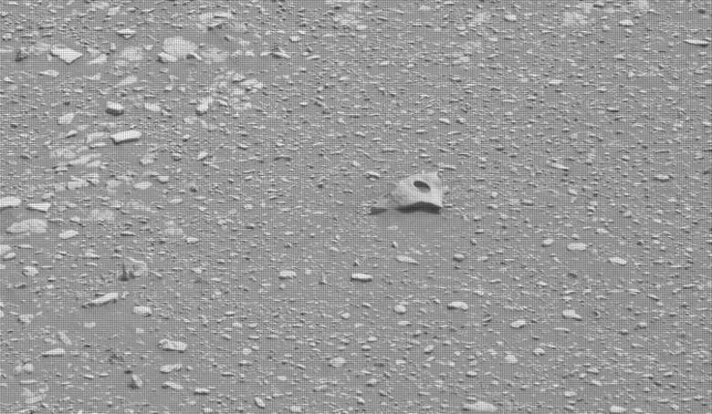 На снимката, изпратена от роувъра Curiosity в началото на това месеци, виртуалните археолози веднага разгледаха необичаен детайл, което не хармонира с повърхността на Марс, на която се намира.