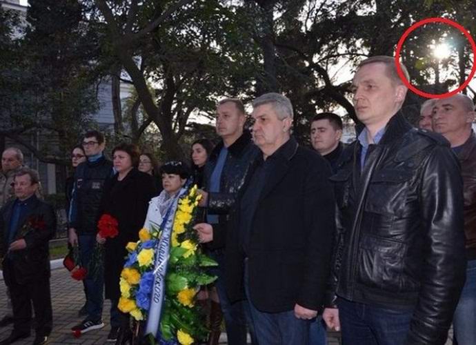 Жители на Руската република Крим намериха във фотография във вестник от неотдавнашния тържествен митинг, нещо мистериозно.