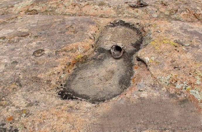 Прави впечатление, че за първи път един казахстанец се натъкна на тях проследява през 2001г. Един мъж отиде до езерото да лови риба, а не повярва на очите си, когато видя гигантски отпечатъци върху камъка голи човешки крака. Първо Вячеслав Иванович се опита да намери намерете рационално обяснение: казват, това е игра на природата и такива прорез в скалата е направен през много векове от вода с вятъра. че по-малко, наблизо, ученият намери още няколко такива двуметра следи. Тогава това откритие обаче не предизвика голяма сензация сега, с развитието на интернет, това може да се надява. Няколко големи англоезични сайтове, които събират информация за свръхестествени явления на Земята, вече публикувани новини статии за находката на казахстански специалист.