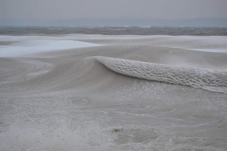 Възхищавайте се и на снежните вълни. Видео, заснето на север Сахалиновите острови. Така Охотско море замръзва – замръзва, неохотно превръщайки се в „снежна каша“, а след това в снежно-ледена покривка. Обаче замразени прозрачни вълни никога не са виждани тук …