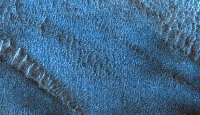 Многофункционална автоматична междупланетна станция „Марс Разузнавателният орбитър на НАСА улавя необичайно картина на Червената планета. Марсиански разузнавателен спътник засне кратер Lyota с диаметър 236 километра, който се намира до северно от екватора на това далечно от нас небесно тяло и записа странна дюна наситено синьо вътре в вдлъбнатината, поразително различен от другите марсиански пясъци. Този Дюн много заинтересовани учени.