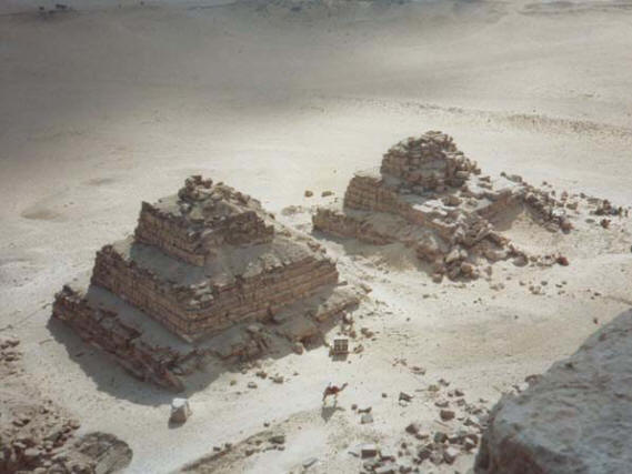 Наистина, придружителните пирамиди пострадаха в резултат на съвсем различно катастрофа? По принцип това също е възможно, защото три придружаващите пирамиди, разположени до Мицеринската пирамида, биха могли да бъдат изградени върху модела (или те самите са служили като такъв модел) три големи пирамиди от представители на друга цивилизация, която или не притежаваше такава мощна техническа база, или нямаше нужда в такива мощни убежища.