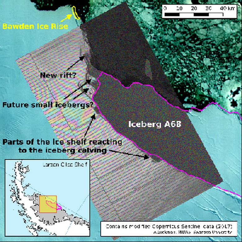 Изследователите в Антарктида обаче се опасяваха от нещо повече: как ще се развият събитията върху ледника в бъдеще Ларсен, загубил голямо парче лед (айсберг A68, като него наречен учените)?