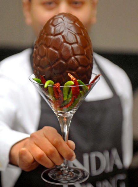 Това великденско яйце е толкова остро, че посетителите преди ядене подпишете документ, който потвърждава, че докладват техните действия. Това яйце дори се готви в специални защитни ръкавици. Лютата чушка в това яйце е 300 бутилки сос Табаско, който е 1 милион по скала на Сковил. Невероятно е, че яйцето не е пикантното ястие в света. 55 годишен Иън Ротуел по-рано тази година беше първият човек напълно надделя над най-острото къри в света, което беше произведени от 30 чушки Naga Infinity. Къри което беше обявен за „Вдовец“ в един британски ресторант, оценен на шест милиона точки по скалата на Сковил – това е повече от газ консерви пипер.