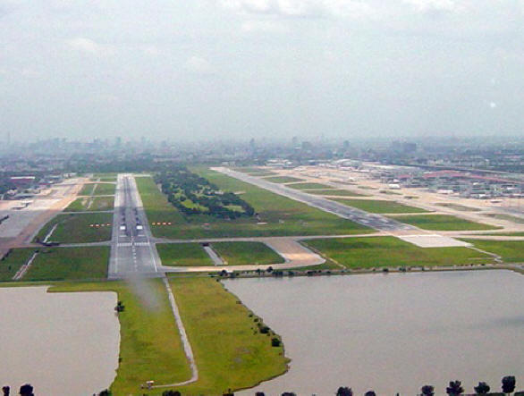 4 Международно летище Дон Муанг. (Банкок, Тайланд). Отдалеч Летище Дон Муанг изглежда като всяко друго летище, но две пистите на непълно работно време са разположени на 18 дупки голф игрище. Въпреки това, администрацията на голф игрището уверява, че няма опасност за играчите.