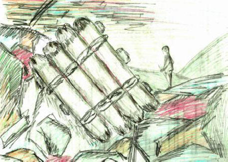 Салът е разположен на надморска височина от 300-400 метра. четири дебели трупи, всеки от които не може да бъде обвит на две ръце, умело привързани една към друга по стария начин: сиг-пръчки, предварително загряти над огън по-дебела от китката на човек Листа купчини и специални слотове за пръчките в трупите се работят много внимателно.