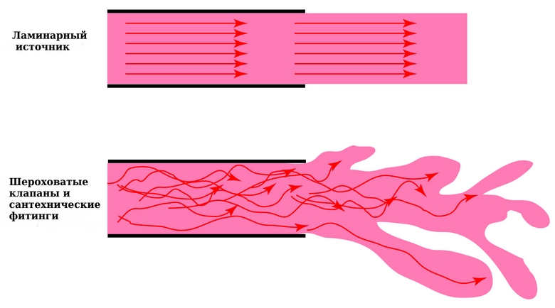 При ламинарен поток течността се движи на слоеве, а не смесване и не пулсиране, тоест без резки промени в налягането и скорост. За да го направим толкова „фантастично“ от първия виж потока, нужна е много чиста вода, тръбата с гладка вътрешна повърхност и, разбира се, липса на вятър. Ако всички условията са изпълнени, водната струя ще изглежда замръзнала, т.е. статично, въпреки че в действителност се движи равномерно на пластове.