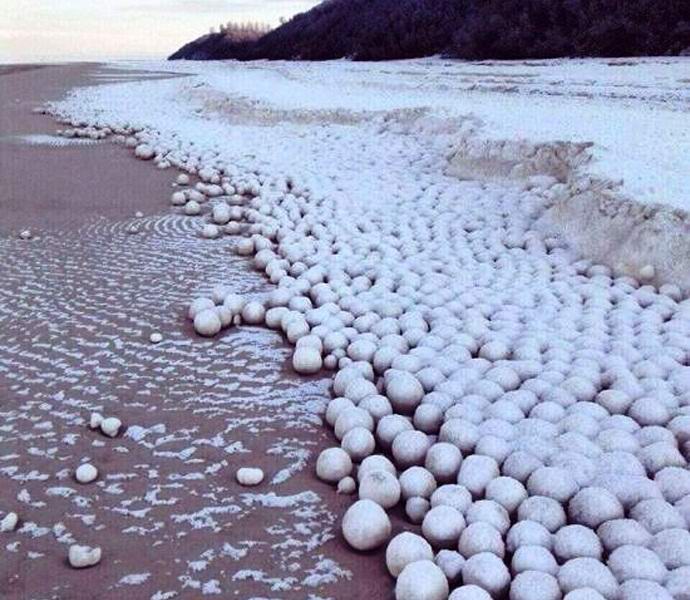 Жители на село Нида на полуостров Ямал в Западен Сибир изправен пред мистериозен природен феномен. На брега на залива Обският залив образува огромен брой големи топки от плътен сняг. Ледените блокове имат диаметър от тридесет до петдесет сантиметра. Някои местни жители предполагат това причината за аномалията се крие в обилния снеговалеж, зад който последван от размразяване и неочаквана буря.