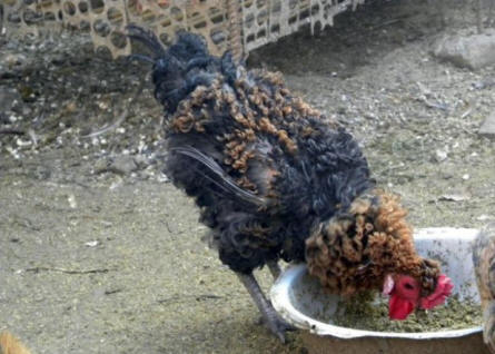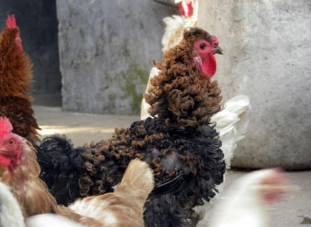 Kinky петел принадлежи на селянина Джан Ян от планината Китайско село Сийцун. Собственикът казва, че петелът излюпени през април тази година. В началото той не се различаваше от други пилета и ядяха същата храна като всички останали. Но веднага щом пера започнаха да се оформят, постепенно стават къдрави. Джан Ян откри, че този чудо петел е много упорит и кокетлив. Той държи други кокошки и петли от хранилката до него изяж Каза служител на окръжното животновъдство той работи в тази индустрия от много години, но никога не е чувал така че петела има къдрави пера. Той предложи това феноменът е свързан с околната среда, генетични и други фактори, което предизвика генетична мутация в петела.