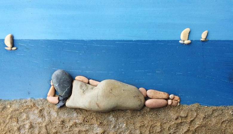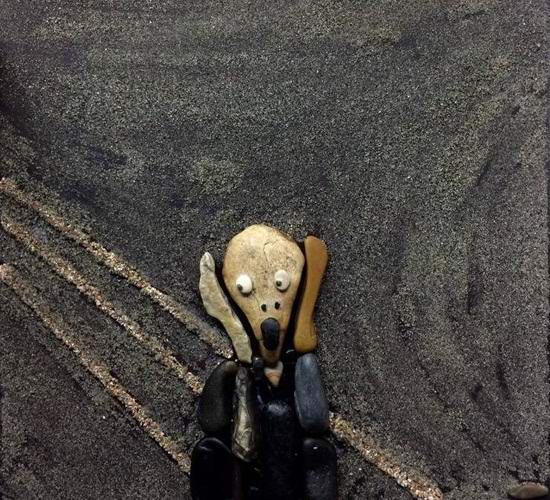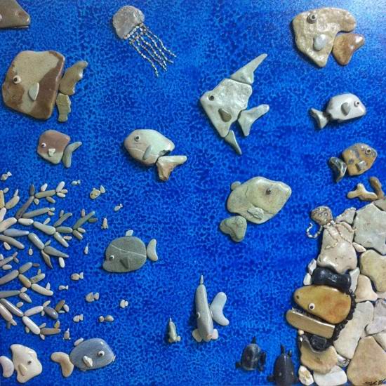 С две думи: мъж събира случайни камъни на плажа геометрични фигури и всякакви цветове, които се сгъват след това в най-различни рисунки. Според автора, в това той доброто въображение помага, откъде се появи внезапно, как само той се занимаваше с това творчество и присъствието на морето точно до него у дома.