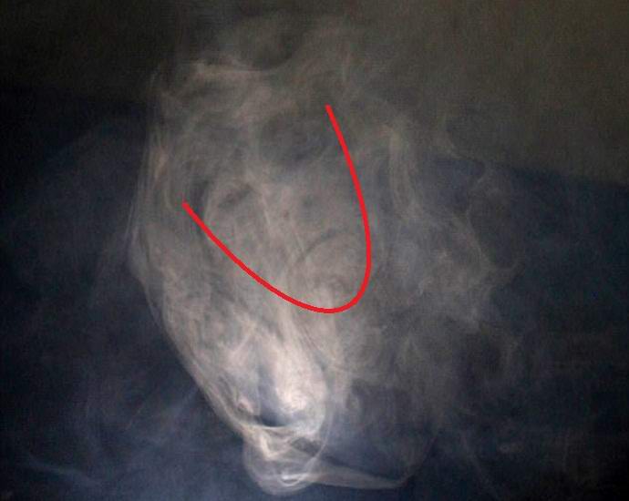Хванат в неосветената основна зала на стара сграда, Уилямсън включи портативен димов генератор с LED лампа, и стаята скоро се изпълни с мъгла. Тогава Стюарт извади своето камерата започна да прави случайни снимки. Беше точно това идея на специалист – да хванеш нещо необичайно в белите клубове дим, – и той, както изглежда, не загуби. Като се има предвид впоследствие получени изображения, експертът беше изненадан да открие на един от тях невероятно ясно женско лице, образувано в тъмното от мъгла.