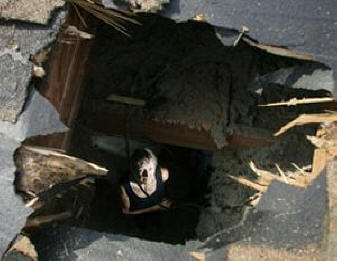 Чувайки невероятната сила на рева, жената отиде да види какво калъф и видях парчета лед, лежащи на пода на банята. На тавана и огромна през дупка, затворена на покрива на къщата. Полицейски инспектор Пол Хюм, който разследваше този инцидент, твърдеше, че ледената ямка е ясно падна от голяма височина. В момента обаче няма самолети нямаше въздух.