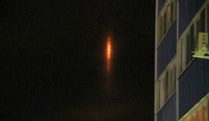Някои жители на Оренбург смятали, че това е факла на някакъв вид газ фабрика, други смятали, че започва планираното нашествие извънземни на нашата планета. Професионалисти, чиито потребители В световната мрежа беше помолен да коментира случилото се, съобщава, че може би това е рядко естествено явление под името на светлинния полюс. Тази оптична илюзия под формата на чрез отражение се образува вертикална ивица светлина слънчева или лунна светлина от повърхността във въздуха микроскопични кристали вода. Може да се наблюдава лек полюс когато времето е студено.
