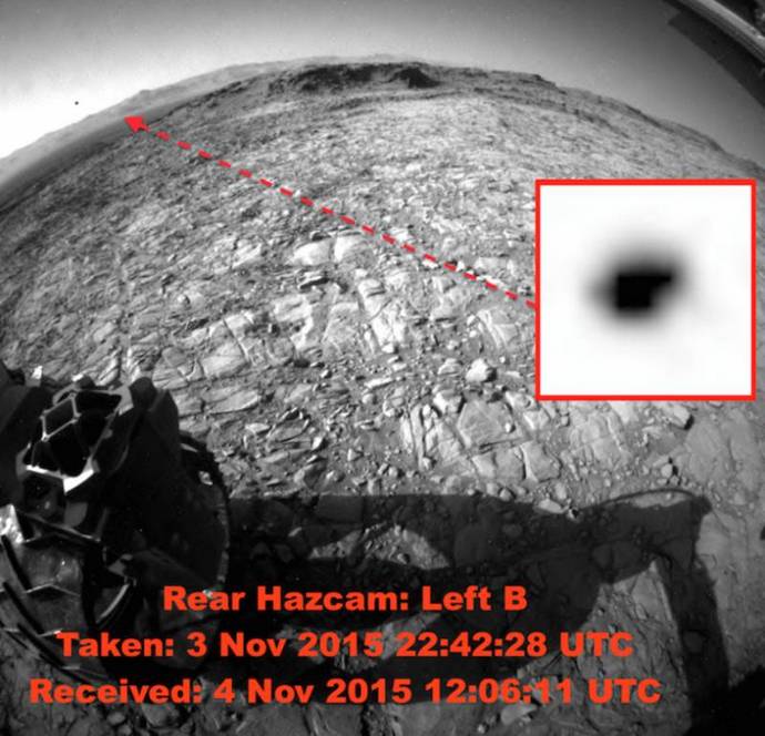 Сега роувърът Любопитство, според ентусиастите на научните изследвания, улови неидентифицирано извисяване над повърхността на Червената планета самолет, който има продълговата форма. Въпреки това, нещо дори по-конкретно за този НЛО просто помислете невъзможно – дори при голямо увеличение.