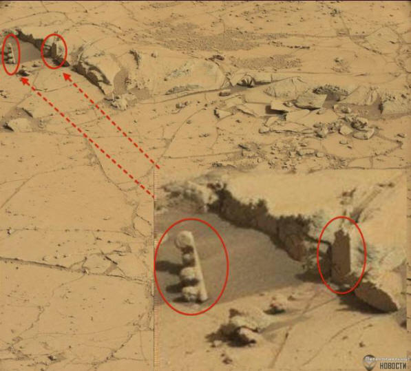 Виртуалните археолози успешно работиха през септември – ентусиасти, които търсят странности в снимки от други планети. тук онзи ден, на снимка, предадена от Марс от робота на НАСА „Любопитство“ (Любопитство от научната лаборатория на Марс), те откриха две наведнъж артефакт.