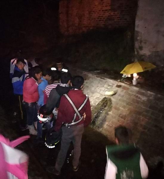 Първата аномалия беше забелязана от малко момче, което кръстосваше моста и чух странен звук, сякаш нещо живо пръскаше във водата. Изненадано дете слезе до канала и видя това на тухла зидарията под тръбата, от която водата се изливаше бавно, се очертаваше силует на Дева Мария. Младият колумбиец се приближи, извади своето мобилен телефон и направи няколко снимки на стената. На определено за момент внезапно му се стори, че образът се движи. момче изплашен, падна на колене и започна да се моли. Тогава той хукна вкъщи, за да разкажем на семейството за случилото се.