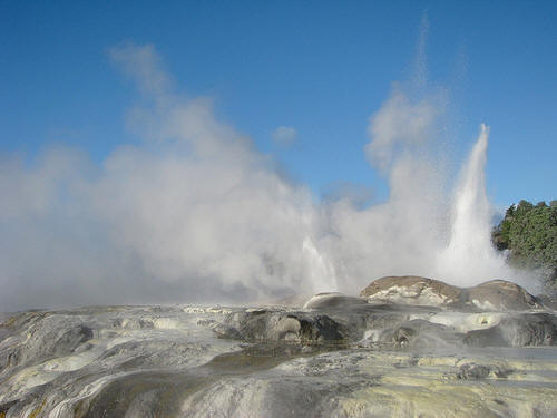 Гейзер Вайманга (“черна вода” на езика на маори) в Нова Зеландия през 1903 г. на всеки 30-36 часа поток вряла вода се хвърляше над 460 високи м. През август 1903 г. по време на една от най-силните емисии умира 4 души, но в края на 1904 гейзерът изсъхна и оттогава емисиите не са подновени. Най-високият активен гейзер наречена параход се намира в Йелоустоун парк, бр Вайоминг, САЩ През 80-те години минималният интервал между изригванията му бяха 19 дни, а максималните – повече от 4 години. В60-те бяха периоди, когато Steamboat изригва на всеки 4-10 дни. Максималната височина на гейзера е от 60 до 115м. ”