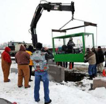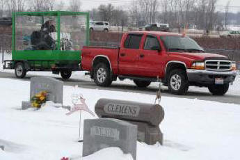 Двама мъже в Охайо изпълниха умиращото си желание баща му, като го погреба на любимия си мотоциклет Харли-Дейвидсън е поставен в прозрачен контейнер.