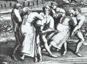 През 1374 г. десетки села по Рейн захванал смъртоносна болест – танцуваща чума или, научно, хореомания (или танцът на св. Най- ит). Стотици хора на по улиците те скачаха и работеха коленете си под никого (освен, вероятно, самите те танцуват) не могат да чуят музиката. Те не ядоха почти нищо и не го направиха спи, понякога в продължение на много дни подред, докато краката се счупят в кръв отказа да ги пази.