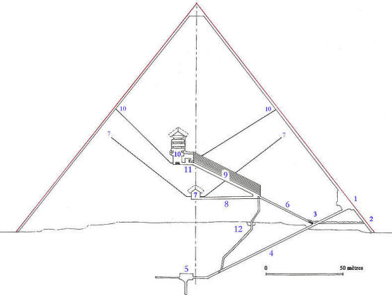 Разглеждайки плана на раздела на пирамидата на Хеопс, можем да заключим това не е открита днес горната стая за молитва на Мастаба (не повече от 15 метра височина) се намира в центъра, точно отдолу средна гробна камера (7). Ако, разбира се, в началото строителството на втория фараон от неговата пирамида над мастаба, тя беше не е унищожен, смазан, разграбен и запазен в обем.