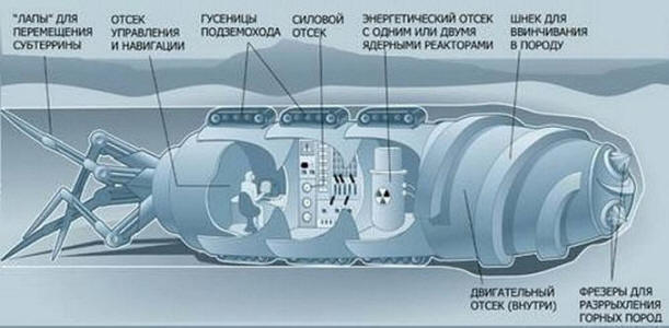 Дали разработването на такива машини в момента е загадка, покрита в мрак. Теоретично това е напълно възможно. Своевременно Академик Сахаров (да, онзи) и професор Покровски претърсиха методи за увеличаване на скоростта на движението на ъндърграунда. те е доказано, че в облак от нажежаеми частици машината може да се движи под земята със скорост от десетки или дори стотици км / ч. Така че проектът “Боен мол” рано да лежи под кърпата.