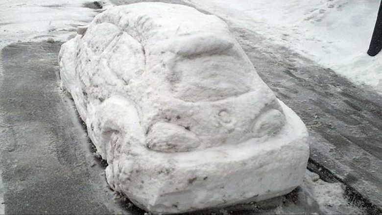 Между другото, отбелязваме, че подобни шеги над полицаите през зимата времето не е рядкост, например в германския град Аахен служители на реда, виждайки на грешно място “снежен” Фолксваген Бръмбар (снимка по-горе), като се твърди, че са изписали глоба на „натрапника“, без дори да плащат внимание на факта, че това е само снежна скулптура. Въпреки това в в американския случай колата от снега изглеждаше много повече по-реалистична и въпреки това Мик Даунинг успя да я разграничи настоящ – поради липсата на числа на първо място. Като немски колегите му успяха в този случай да напишат фина снежна скулптура, не е ясно, но е на съвестта на местните журналисти …