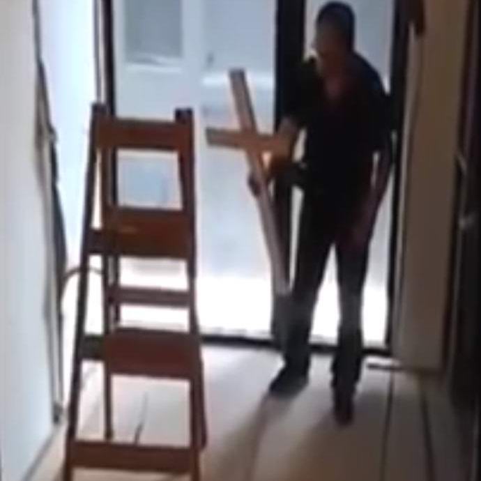 Той дори се опитва да се бие с невидим шегаджия с двама дъски, обаче неуспешно. Уплашен човек се гради от тях дъска дървен кръст и насочва домашно разпятие върху “обсебен” стълбач. Това не помага, тъй като живото стълбище в крайна сметка самостоятелно тя се сгъва и пада на пода, и самопровъзгласен екзорцист, който не успя да се справи с невидимото по дяволите, отстъпвайки в ужас.