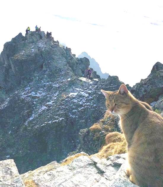 Обаче, на самия връх, героят ни изведнъж … се срещна съвсем неочакван непознат, който невероятно озадачен и изненада алпиниста. На върха на Lynx седеше красива котка джинджифил, очевидно домашен и чистокръвен, спокойно облизва лапите си. Удивен Войчех побърза да вземе мобилния си телефон и да заснеме “неподходящо” животно на камера.