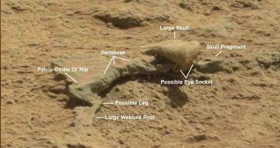 Предмет, много подобен на скелет, веднага привлича вниманието. Освен това, ако костите могат да бъдат наречени стреч камъни, тогава черепът на това марсианското чудовище е ясно костелив и е принадлежало, може би, тук такова същество (виж снимката по-долу).