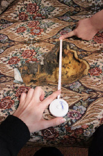 Центрове за спонтанно изгаряне на дивани. След около 10 дни след началото на първата вълна от необичайни събития спонтанно изгаряне. Предмети и неща започнаха да мигат. Първи гърба на дивана в частта на къщата с печката, но огънят беше бърз потушен. Малко по-късно внучката се обади на дядо, седалката вече гореше дивана. В друга част на къщата, където зетът живееше със снаха си, избухна диван, след който нещата спонтанно пламват (овъглени тапети, дрехи, петна по отоплителната батерия), включително в стаята момичетата. Обадили се на местния православен свещеник, но промените не се случи нищо.