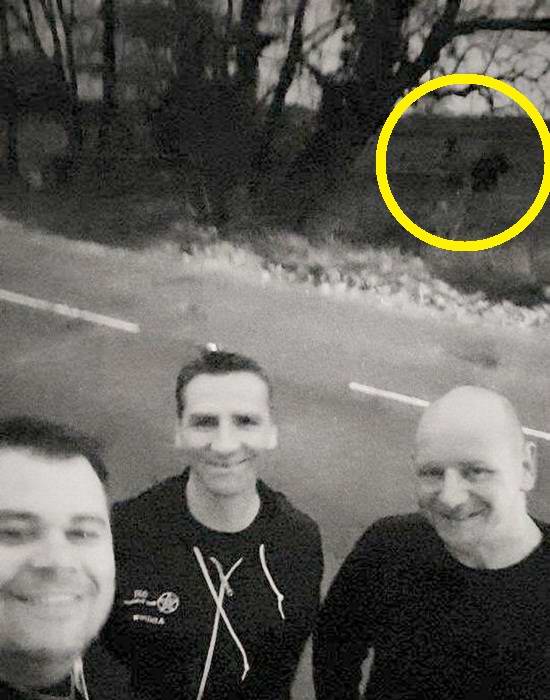 Британците бяха изумени, когато вечер направиха селфи и заснети на заден план нещо необяснимо. Отвъд пътя от тях на снимката се появи черен силует, подозрително приличащ висок ездач на голям кон. Излишно е да казваме, че нашите героите веднага решили, че случайно са снимали настоящето призрак.