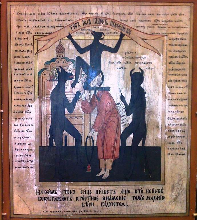 Кой е създал подробните произведения? В тези безбожни актовете са били обвинявани върху староверците, иконоборците, офанзийците, юдаизмите и други еретици. Смята се, че най-често злодеите са искали да осквернят общоприети християнски стандарти и внушават на вярващите страх или отвращение пред образите, като по този начин завършва идолопоклонство. Въпреки че понякога ставаше дума за обикновени рекламни фалшификати, които бяха снабдени със скрити изображения на дявол в като средно шега на купувачите.