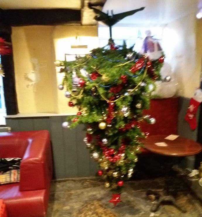 Най- понеделник, 19 декември, собствениците на заведението гордо публикува снимка на Коледа във Facebook Коледно дърво, поставено този ден в бара. Британците обличали гората красиви сребърни и златни топки, както и атрактивни гирлянди. Те увенчаха празничното дърво с петолъчна червена звезда. Въпреки това, сутринта на 20-ия ден се оказа персоналът, който дойде на работа изумен, че някой успя да преобърне смърча за една нощ. Нямаше следи от проникване в помещенията, докато от кръчмата нищо не е загубено, така че британците разумно смятат, че това призрачен трик и не извика полиция.