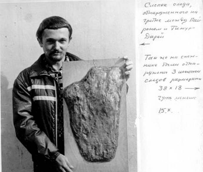 През септември 1974г екипът по катерене, воден от инструктор Игор Тацл, прекара нощта в долината на река Сиам. На следващата сутрин хора видя в снега до палатките гигантски отпечатъци от нечий бос крака.