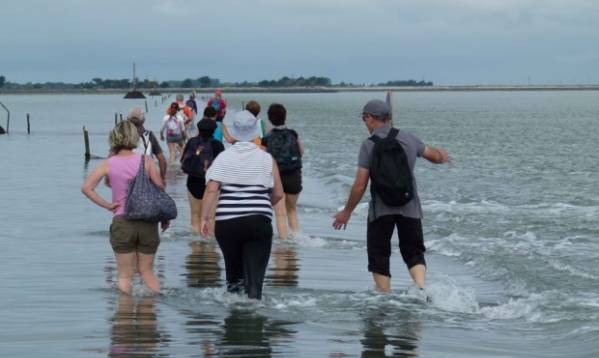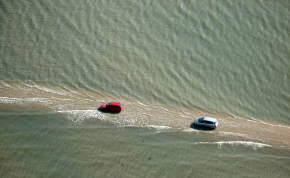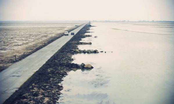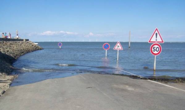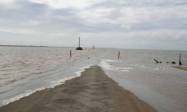 Дори такъв къс крак се счита за много рискован. за движение. Понякога пътешествениците не пестят многобройни предупредителни знаци, без приливен график и отлив. Фактът, че водата на това място започва да пристига много бързо, поради тази причина някой, да, със сигурност ще попадне в капана. За такива нещастни дори са изградени специални кули по магистралата, на който хората могат да изчакат прилива. Вярно, запишете колата в този случай няма да успее – и това е основната беда на този път за многобройни туристи (местните жители отдавна се адаптират към този настроен начин).