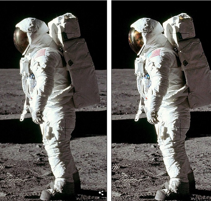 В представеното по-горе изображение лицето на астронавта не се виждаше. Благодарение на усилията на ентусиаста Анди Сандърс, изстрелът беше обработете и подчертайте замъгленото изображение на астронавт зад стъклото. Специалистът буквално обработи всеки пиксел в изображението подчертайте лицето на астронавт (вижте снимката по-долу). Тази картина беше произведен от Нийл Армстронг.