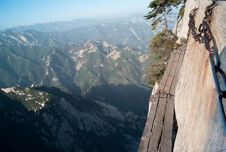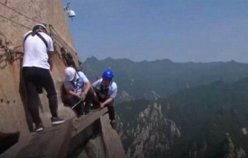 В продължение на 33 дни китайските алпинисти замениха това “път на смъртта” гнили дъски върху пресни, толкова известни екскурзионен маршрут до планината Хуашан (близо до град провинция Хуайн Shaanxi, PRC) отново стана достъпна и най-важното – безопасна.