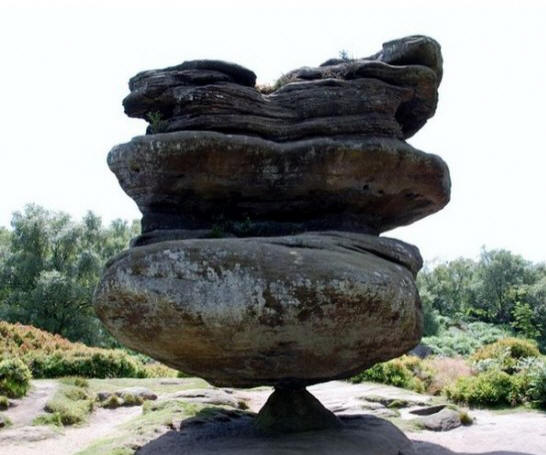 50 просторни декара в Бриъм, (Северен Йоркшир, Англия) са дом на група любопитни скални образувания, които образували се десетки хиляди години. Най-впечатляващо формацията е известна като Idol Rock – 200 тона монолит, балансиращ върху мъничка каменна пирамида. Изглежда че 15-футовата скала е на път да се срути, но не става Това го прави. 200 тона твърда скала предизвиква законите физика и плаши посещенията на туристите с нейното неестествено стабилност. рок та има и друго име: „Таблица на друидите“. Дълго време рок снимките пътуват в Интернет, като доказателство за умението на Photoshop, но това е измама. СкалаИдолът е истински и представлява артистичен талант Майката природа. Във викторианската епоха повечето хора мислеха че тези странни скали и наистина цялото това място – е създадено от друидите, но в 20 век осъзна, че всичко това е резултат от 18 000 години ерозия.
