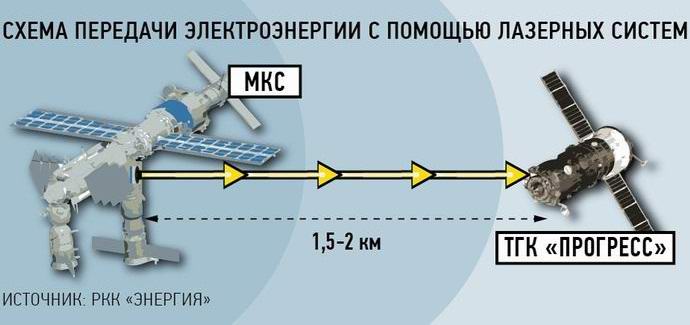 Най- место кабел, местните учени ще използват лазер лъч – интензивен поток светлина ще предава електричество от руснака Сегмент на Международната космическа станция на транспортен кораб „Прогрес“, който ще бъде на една и половина до две мили от гарата километри.