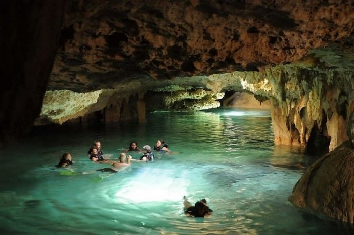 Подземният канал протича само през почти всички зали на Сак-Актун Малко по-малко от шест километра от пещерата бяха “сухи”. Всички без Изключенията от галерията са зашеметяваща гледка: висока арка, живописни сталактити и прозрачни, като кристал, вода …