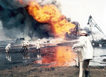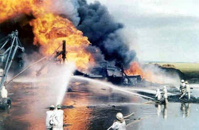 В 14:40 един от горящите резервоари избухна (№ 17). се развихри огън, в който за секунди оживя хората по пътя му изгоряха. Много от тях не останаха останките. Вълната достигна до отсрещния бряг, където също хората бяха наранени. Нефт се разля по повърхността на реката. Отстрани изглеждаше, че земята и водата горят.