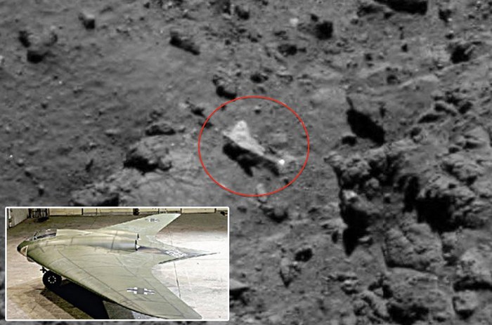На снимката, изпратена от тази комета, виртуални археолози откриха онзи ден странен предмет, наподобяващ крилат космически кораб и много подобен на подобно устройство, веднъж направени от нацистите в Германия. Уфолозите забелязали това неизвестен предмет има ясно метална повърхност, която драстично различен от пейзажа около НЛО.