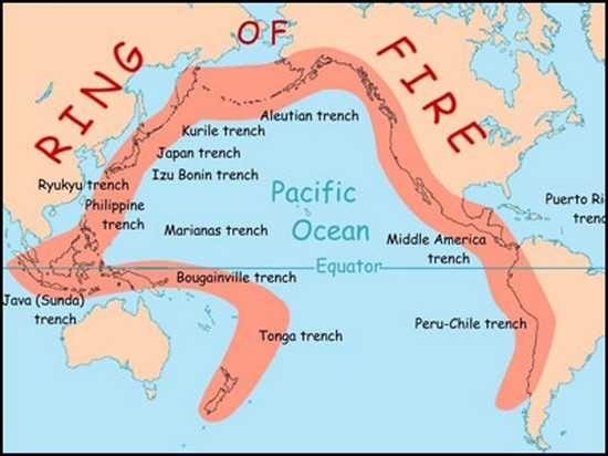 Така че, според изчисленията на японските сеизмолози, през 2018-2019г се активира верига от вулкани, така нареченият Огнен пръстен (виж диаграмата по-долу). Може да заплашва сериозно земетресения и последици от пробудени вулкани редица държави – и основната опасност е сеизмичната активност този период за Америка.