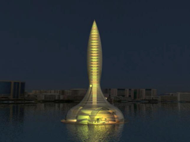 Проект за луксозен хотел в Дубайския залив на стойност около 500 млн. долара. Предвижда за излитане под водата 20 метра дълбочина и 120 метра над водата. Стаите планирайте да оборудвате осветлението, формата, звуците на контролния панел и мирише