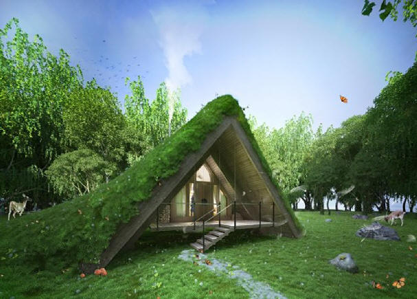 проект ът представлява сливането на две древни сибирски сгради – Сибирска колиба и обикновена землянка. Използва се елементарна основа от две трупи от лиственица и необичайна тревен покрив.