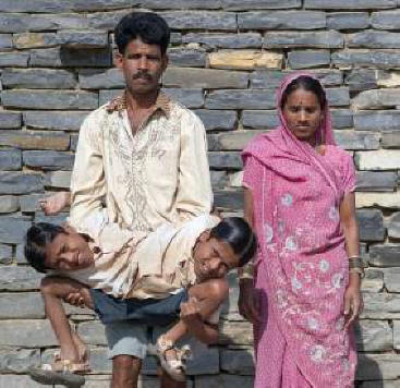 Снимка от отворени източници Братя, родени в малко село близо до град Райпур в централна Индия, имат два крака и четири ръце. Те зашеметили лекарите с възможност да мият, обличат и да ям. Когато момчетата се родили, местен лекар казал на семейството, че и двете деца са здрави, но той не може да ги раздели. Близнаците имат едно стомах за двама, но те имат независими бели дробове и сърца.