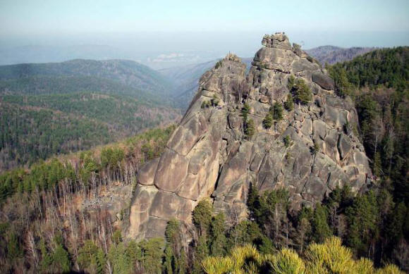 Снимка от открити източници През нощта ловецът видял, че Куренг очи навити, виждат се само катерици. Тогава той излезе от сепарето, сложи на ските и даде командата “юк”. Самите ски минаваха през тайгата. Куренгсе събуди и не намери нито ловец, нито неговите ски. Той сложи ски ловец, но колкото и свирка, ските не се движеха. Нашловец на ски на живо бързо се прибра. но той Забравих да попитам kureng – как да спра ските. Вече минава покрай своя аал и не успява да спре ските, ловецът той извади нож и се блъсна в ските, облицовани с лост на гърба. Теспря и от разрезите тече кръв. Живите ски са мъртви загубил кръв. Ако ловецът разбра от кюренга как да спре ски, тогава живата екипировка (жив транспорт) би била в нашите ръце. Куренги сега не са в тайгата, защото са били оградени в планините Саян Върховен творец. Сега те се помнят в Хонгорай. пържене на цветя, чийто червен цвят е същият като цвета на очите на kurengs. На скалите Хакас множество изображения на ловци чудно ски. Смята се, че ако имате ръка в това изображение, ще придобиете невероятна сила и издръжливост. Красноярски стълбове Самият произход на огромни скали причудлива форма, идваща от средата на тайгата, – гатанка. Научна версия: стълбове – появили се сиенитни скали от земята преди милиони години. И тогава – вятър, сняг, дъжд, сеизмичните явления са им приличали с хора, животни, птици. Оттук и имената – дядо, баба, лешояд, гарван, златен орел, Camel. Древните легенди обясняват появата на стълбовете по свой начин. Поедин от тях, престореният цар Енисей, ядосан на не се подчини на дъщерите си и тяхната любима, обърна Базайха и Laletina в реките, и техните младоженци-първенци заедно с целия отряд – в скалите. Предполага се, че има и версия за определен древен град на мъртвите е съществувал на тези места. И е като Стълбовете – независимо дали руините му, или дали самите жители на града на мъртвите, чакащи на крила и въстанали от земята.