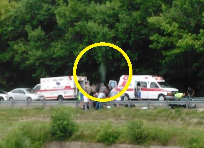Камионът Сол Васкес взе тази снимка от камерата си камион, шофиращ по съседен път. Снимката показва коли линейка и полиция, както и задръствания от други автомобили, които натрупана наблизо поради невъзможността да шофирате.