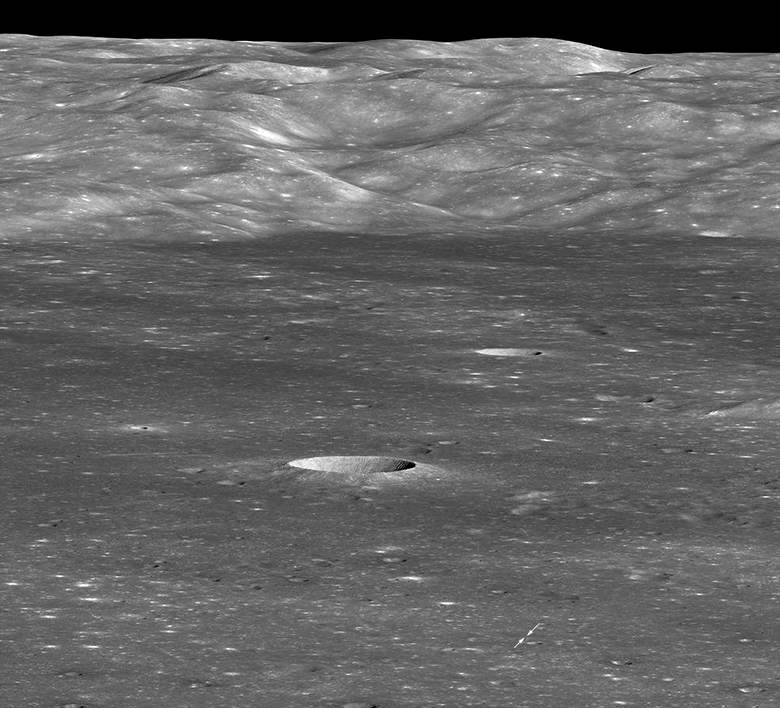 Като направи завой на запад и се приближи възможно най-много възможно разстояние до Кармен Кратер, където кацна китайският модул с лунен ровер Yuta-2, сондата LRO успя да улови “заек” в обектива на камерата му. Вярно, лунният роувър е видим само като бяла точка (погледнете между стрелките), защото защото огромно разстояние до него от 330 километра (не е по-близо до летенето успя), размерът на обекта на снимката заема само два пиксела.