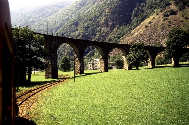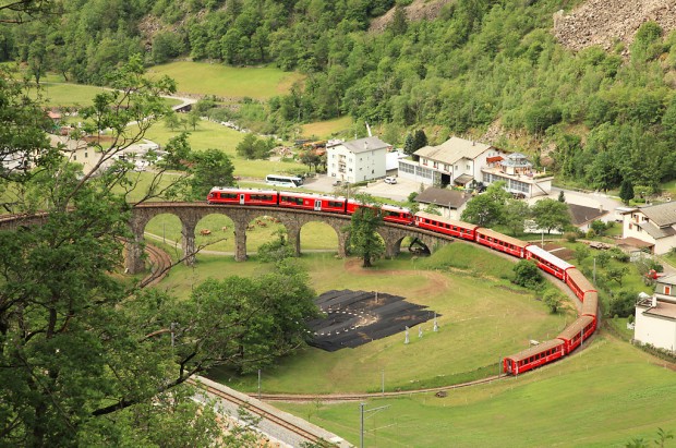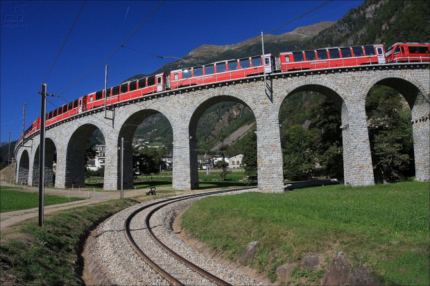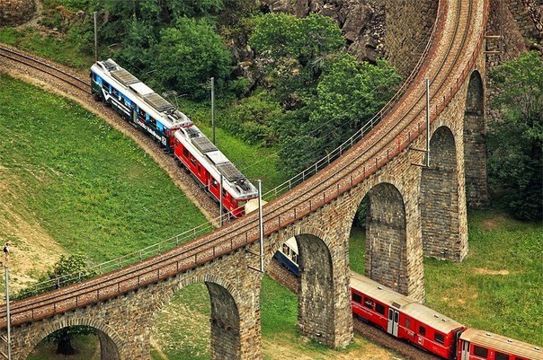На творенията на човешките ръце, като тази спирала виадукът, който е построен в Швейцария, близо до град Брусио, можете гледай часовника. на й е особено привлекателен във време, когато влак се спуска или се издига до него.